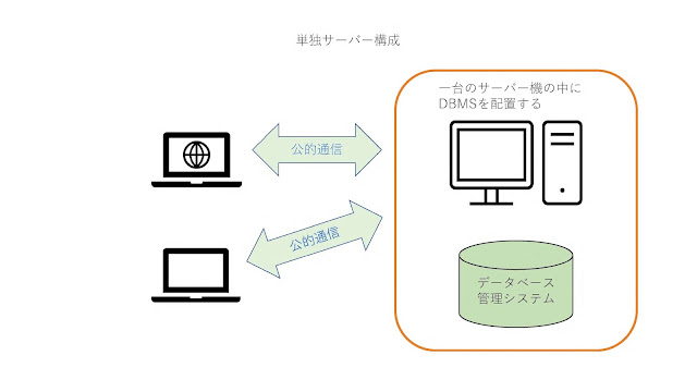 サーバー機は一台だけで、その中にDBMS(データーベース管理システム)を設置する。