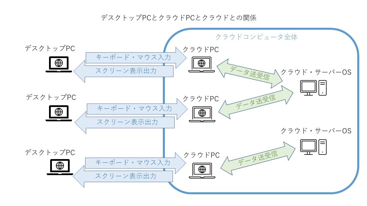 クラウドPCは、クライアント端末がクラウドの中に存在する。